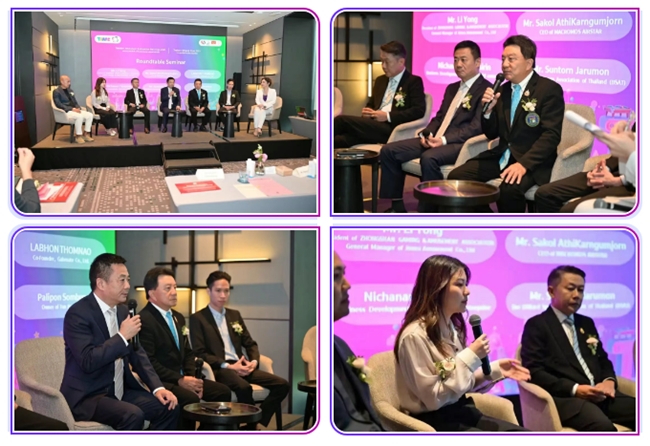圓桌研討會上,中山市游戲游藝行業(yè)協(xié)會會長、廣東金馬游樂股份有限公司總經(jīng)理李勇、泰國臺球協(xié)會會長Mr.Suntorn Jarumon、MACROMOS AIRSTAR首席執(zhí)行官M(fèi)r.Sakol AthiKarnGumJorn、Solid enterprise業(yè)務(wù)發(fā)展主管Ms.Nichanan Tantasirin、Gabenate Co., Ltd.聯(lián)合創(chuàng)始人Mr.Labhon Thomnao、TON Praram3品牌創(chuàng)始人 Mr.Palipon Sombun等嘉賓圍繞“體育商業(yè)經(jīng)濟(jì)助力下泰國旅游娛樂的未來”主題展開深度對話。各方觀點(diǎn)碰撞交融,為產(chǎn)業(yè)發(fā)展提供了兼具前瞻性與實(shí)操性的思路建議。
